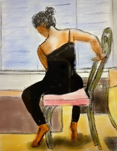 This is a fairly repeating theme of mine to draw and paint women who are in the same space but not really conversing. This was done from a life drawing.